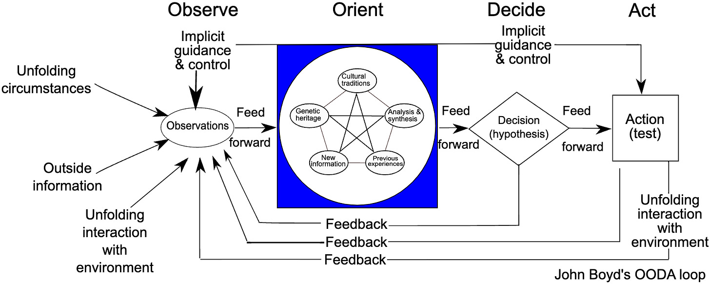 After numerous successes during WWII, the Korean War, and the Vietnam War, reflections on his ability to swiftly act on well-processed judgments in complex situations led him to coin the term 'OODA loop' – a four-step mental model for decision-making, comprised of Observe, Orient, Decide, and Act.